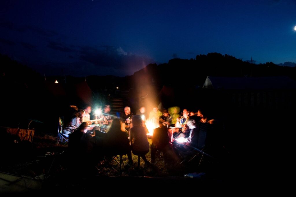 - Am Lagerfeuer plaudern, lachen und philosophieren